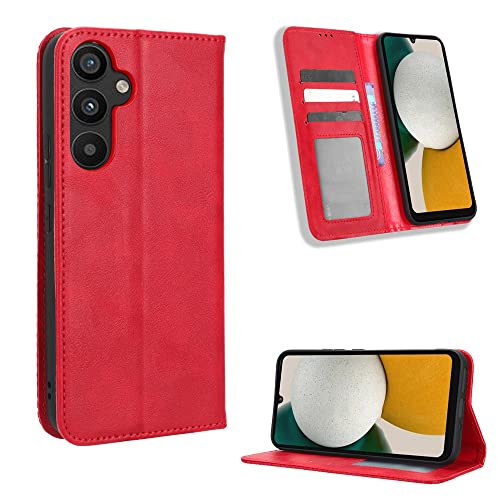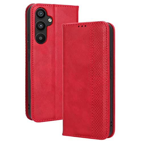 WOBURN Leather Folio Cover per Samsung Galaxy A34 5G, Custodia in Pelle PU Magnetica Libro Flip Portafoglio con [Funzione Stand]. Rosso