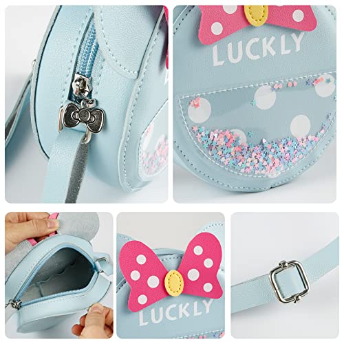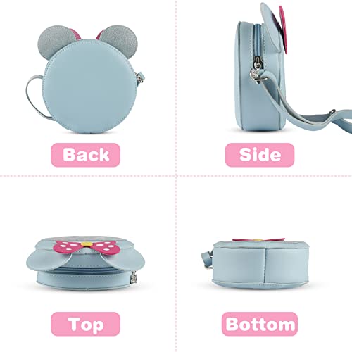 Wodasi Borsa a Tracolla per Bambine, Borsa a Tracolla PU Bambina, Simpatica Borsa a Tracolla Per Bambini con Fiocco, Borsetta Tracolla Regolabile per Bambine, Borsa Tracolla Bambina, Blu