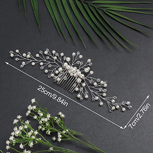 Wodasi Pettine Sposa, Pettine per Capelli da Sposa in Cristallo, Accessorio per Capelli con Perle e Cristallo, Pettine per Capelli da Sposa e da Sposa, Accessorio per Capelli da Sposa (A)