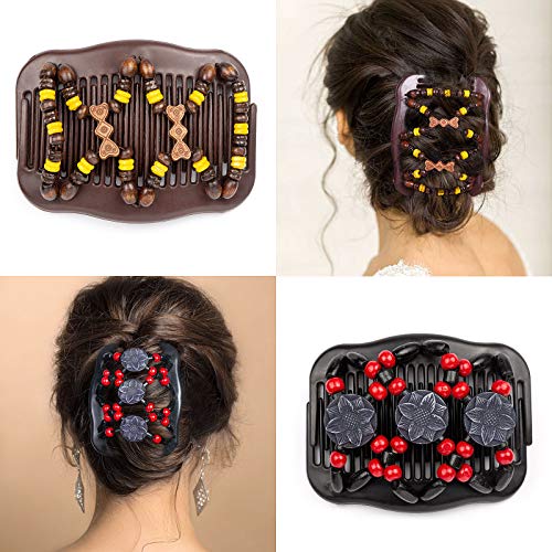 Wodasi 4 Pezzi Magic Hair Comb, Stretchy Double Bead Hair Magic Comb Clip, Fermacapelli da Donna Magico Elastico, Pettine per Capelli Elastici Doppie Clip, Pettini Elastici Magici