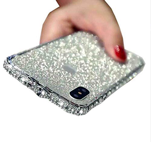WODETIAN Cover Compatibile con Custodia per iPhone 12/12 PRO / 12 PRO Max Custodia Glitter Bling Paillettes Bordo in Metallo Bumper con Brillantini Diamante Moda Anti-Scratch Cover,Bianca,12pro