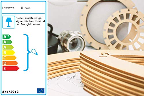 ✅ Contenuto:Lampadari a Legno Sospensione di alta qualità Solis | Colore: Natura | 28x33 cm | lunghezza del pendolo regolabile in altezza max. 120 cm | cavo lampada cavo per lampada in tessuto nero | Spina: E27 | LED adatto | max. 60 watt
