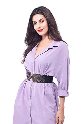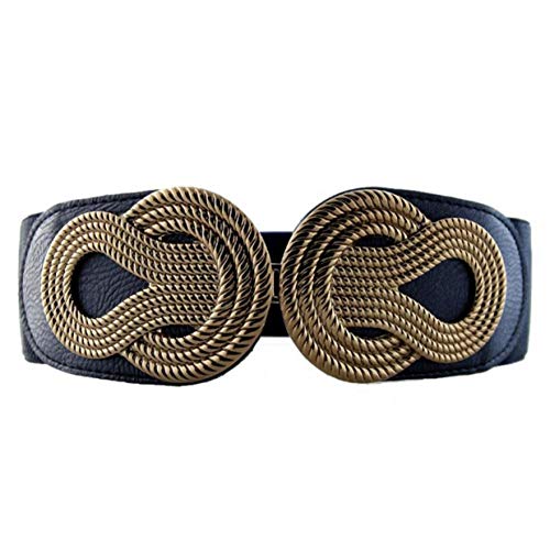 WODISON Vita donne Retro Elastic Belt metallo interblocco Buckle Ampio Cinch
