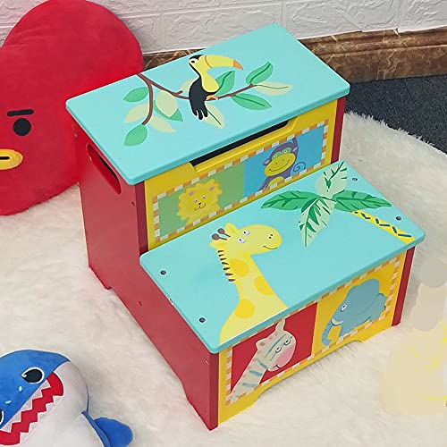 WODNEY Sgabello per bambini in legno | Sgabello per bambini con contenitore | Sgabelli a doppio gradino portatili e leggeri per bambini Bambini Bambini Ragazzi Ragazze