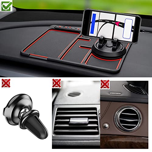 Woeau Antiscivolo Tappetino per Auto - Supporto per Cellulare 4 in 1 Antiscivolo per Auto, Supporto per Cellulare Antiscivolo a 360 Gradi sul Cruscotto