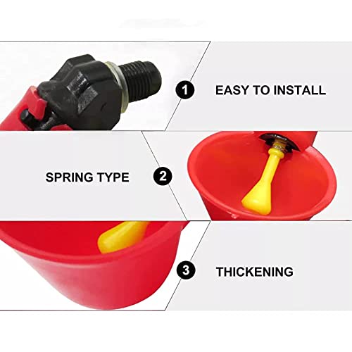 ♥ Completamente automatico: Abbeveratoio automatico per pollame grilletto giallo sulla tazza che può attirare il pollo a beccarlo. Quando il pollo becca il grilletto giallo, la valvola rilascerà automaticamente l'acqua nella tazza di plastica rossa per fornire loro acqua.