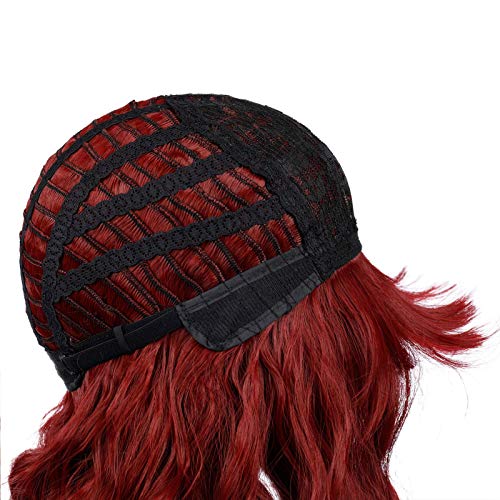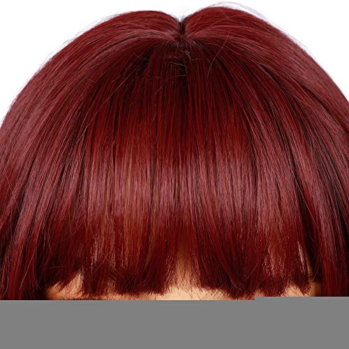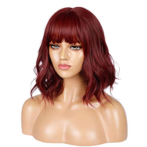 WOERD Parrucche Capelli Veri con Frangia Parrucca Corta Riccia Sintetica, Morbida, Afro Bob Ondulata per Capelli Sintetici di Media Lunghezza per Festival Uso quotidianowine Red