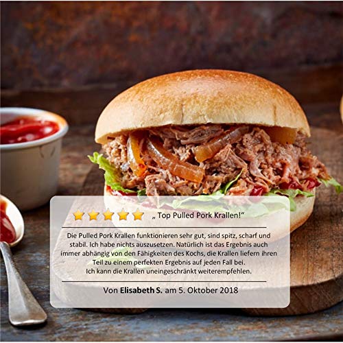 ✔️ Non si piegano - con i nostri artigli per pork pulled pork le forchette piegate sono adatte per preparare la carne: l'acciaio inox ultra affilato e temprato non lascia alcuna chance! Così anche un intero arrosto viene ridotto