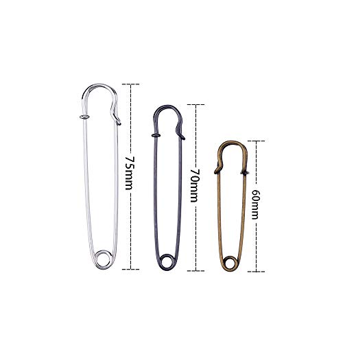 [Set di spille di sicurezza]: 4 spille di sicurezza in argento da 75 mm, 4 spille di sicurezza nere da 70 mm e 4 spille di sicurezza in bronzo da 60 mm, in totale 12 pezzi.