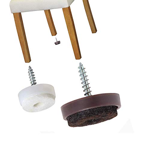 Wohlstand 50 x Scivoli in feltro con vite,Unghie in mobili feltrini,Piedini in feltro rotondi nichelati, Ø 24 mm,marrone,Protezione sedie mobili e pavimenti