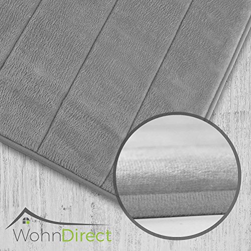 WohnDirect Tappetino da Bagno Antiscivolo, Lavabile, Si asciuga Rapidamente, Moderno, in Microfibra, Morbido ed Elastico, 50 x 80 cm, Grigio