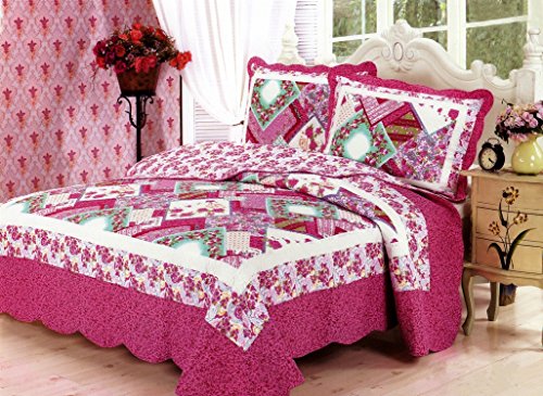 1001 Wohntraum T414 Quilt O Blumen - Trapunta Patchwork Country Shabby, 180 x 220 cm, Colore Rosa