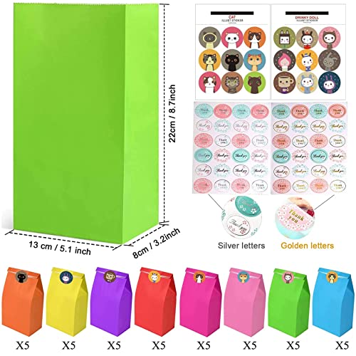 Wohot 40 Pezzi Sacchetti Regalo per Feste, Sacchetti Colorati di Carta Kraft con 66 Adesivi per Confezionare Regali, Compleanni per Bambini, Natale