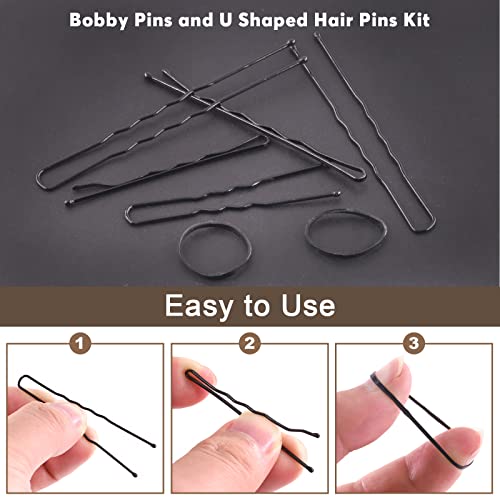Quello che ottieni - In questo kit otterrai 380 perni da 2 pollici e forcine per capelli a forma di U da 2,4 pollici con elastici in gomma nera. 2 stili di forcine per capelli Bobby e forcine per capelli a forma di U, 100 elastici in gomma nera. In totale 380 pezzi. La giusta dimensione per appuntare i capelli, abbastanza per il tuo ricambio e la sostituzione quotidiana.