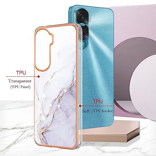 WOKEZ Coque per Honor 90 Lite 5G, Cornice Morbida Custodia Protettiva in Silicone TPU con Motivo Elegante, Cellulare Cover con Cuscino d'Aria Avanzato, Resistente ai Graffi e Anti-Impronte-Bianco