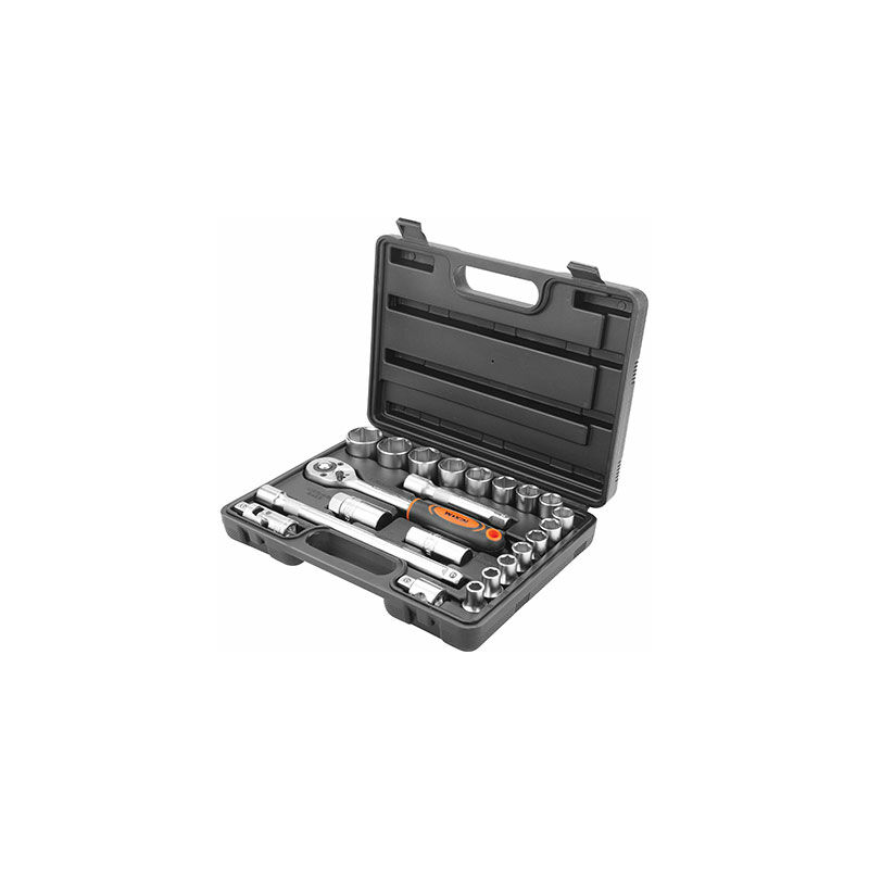 In acciaio al cromo vanadio. Assortimento composto da: 1 cricchetto reversibile;