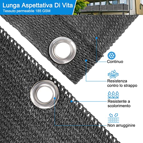【Protezione a Tutto Tondo per la Privacy del Balcone】Schermo per la privacy del balcone perfetta protezione a tutto tondo e bella decorazione per il tuo balcone e giardino: materiale HDPE. Lavorato a maglia da 185 g / m² di polietilene ad alta densità. Il tessuto ricorda una rete di plastica ad alta densità ed è più traspirante, non completamente opaco ma leggermente trasparente. Il materiale è leggero e morbido e ha il compito di proteggere la privacy e ottenere un certo effetto decorativo.