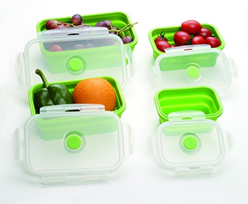 Wolecok - contenitori per alimenti in silicone pieghevole, riponibili in freezer e in forno, Silicone, Green, xl