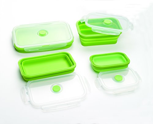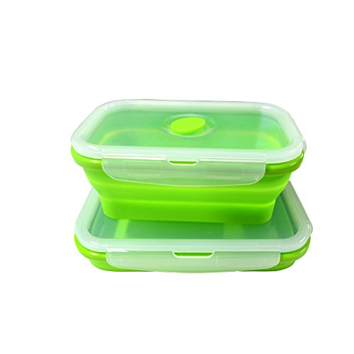 Wolecok - contenitori per alimenti in silicone pieghevole, riponibili in freezer e in forno, Silicone, Green, m