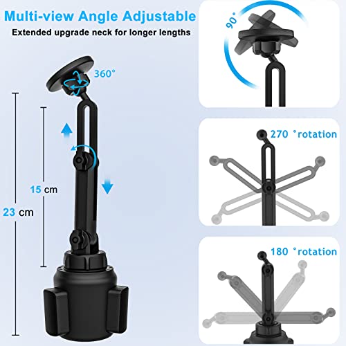 【Collo lungo regolabile】Progettato con un collo allungabile da 10 cm a 16 cm di lunghezza. Facile meccanismo di serraggio e allentamento, questo supporto telefono tazza auto magnetico è realizzato in PVC di alta qualità ed ecologico per una maggiore durata. Una sfera girevole flessibile per una rotazione di 360° e un braccio snodato per un facile movimento di 270° migliorano ulteriormente la migliore visuale del telefono.