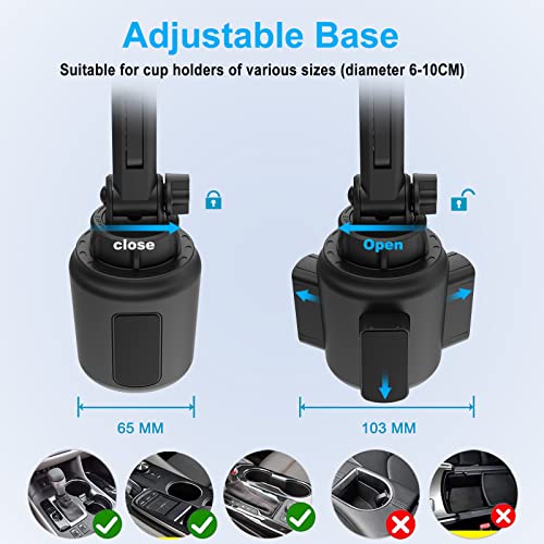 【Base espandibile più ampia aggiornata】La base regolabile aggiornata può essere estesa da 65 mm a 103 mm per adattarsi a tutti i portabicchieri per auto. Nel frattempo, con i morbidi cuscinetti in silicone antiscivolo e il materiale resistente, il supporto telefono portabicchieri macchina del veicolo sarà bloccato saldamente nel portabicchieri. Non cadere mai e rotto. Proteggi i tuoi dispositivi da eventuali danni.