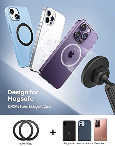 【Progettato con precisione per Mag safe】Migliora la tua esperienza di guida con il nostro nuovo supporto cellulare griglia aria auto magnetico, progettato per iPhone 14, 13 e 12 serie. Forniamo 2 anelli in metallo extra, si adattano ad altre cus