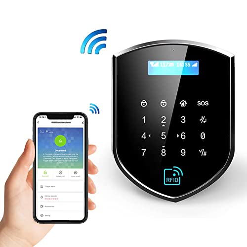 Contenuto della confezione: viene fornito con 1 sensore per porta, 1 sensore di movimento, 2 telecomandi per attivare e disarmare, 1 sirena, 1 host di controllo dello schermo e 2 tag RFID. I tag RFID possono attivare/disarmare, quindi facile da usare per il tuo genitore maggiore o per i tuoi figli, basta utilizzare il touch RFID una volta il braccio, il secondo tocco è disarmare