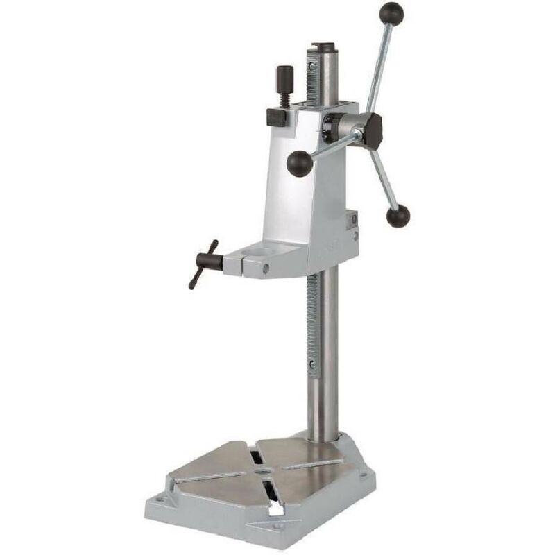 Dettagli tecnici Altezza operativa max 305 mm Dimensioni prodotto Altezza 570 mm Peso 7.1 kg Tipo prodotto Supporto per trapano Supporto foratura Per una foratura precisa in aree piane, strisce di materiale rotondo, ecc. Punti di forza e dettagli Per una foratura assolutamente precisa di superfici, materiale rotondo, strisce Manopola di bloccaggio per foratura ripetitiva · Caratteristiche Piano di lavoro fresato con scanalature di serraggio per il fissaggio di griffe o morse di serraggio Robusta colonna tonda da 40 mm con lunghezza di 340 mm avvitata su barra dentata - nessuna torsione durante la foratura Molla di ritorno integrata Anello di scalatura regolabile per profondità di foratura millimetrica Con supporto per cavi Altezza di lavoro: 305 mm Norma europea registrazione ø 43 mm Incluso nella consegna null Requisiti di sistema null Note Consegna senza morsa. Illustration similar.