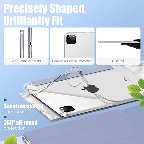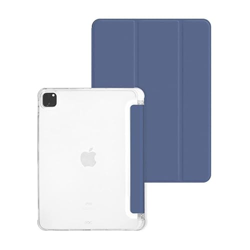 The Wolfdragon Custodia per iPad Pro 12.9, 5a/4a/3a generazione (2021/2020/2018) con portapenne Slim Hard PC Clear Shell Smart Trifold Stand Cover protettiva, Auto Sleep/Wake(blu scuro)
