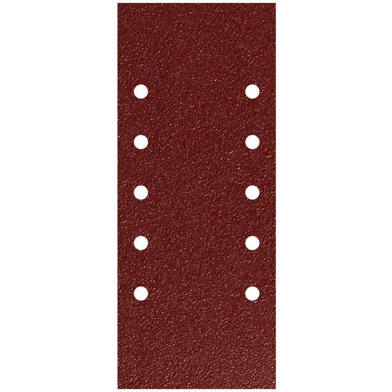 Carta vetrata di ricambio per levigatrici - 10 pezzi. - Misure: 115 x 280 mm. - Ricambi con fori. - Con velcro. - Grana 80. - Utilizzo universale nelle levigatrici orbitali. - Dimensioni standard.