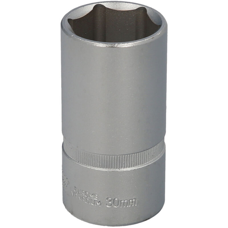 Chiave a bussola esagonale lunga 1/2 - Misura: 30 mm. Profilo interno a 6 facce. - Realizzata in acciaio al cromo vanadio, garantisce maggiore durezza e resistenza. - Conforme alla norma DIN 3124 normative. - Bordi arrotondati. - Con