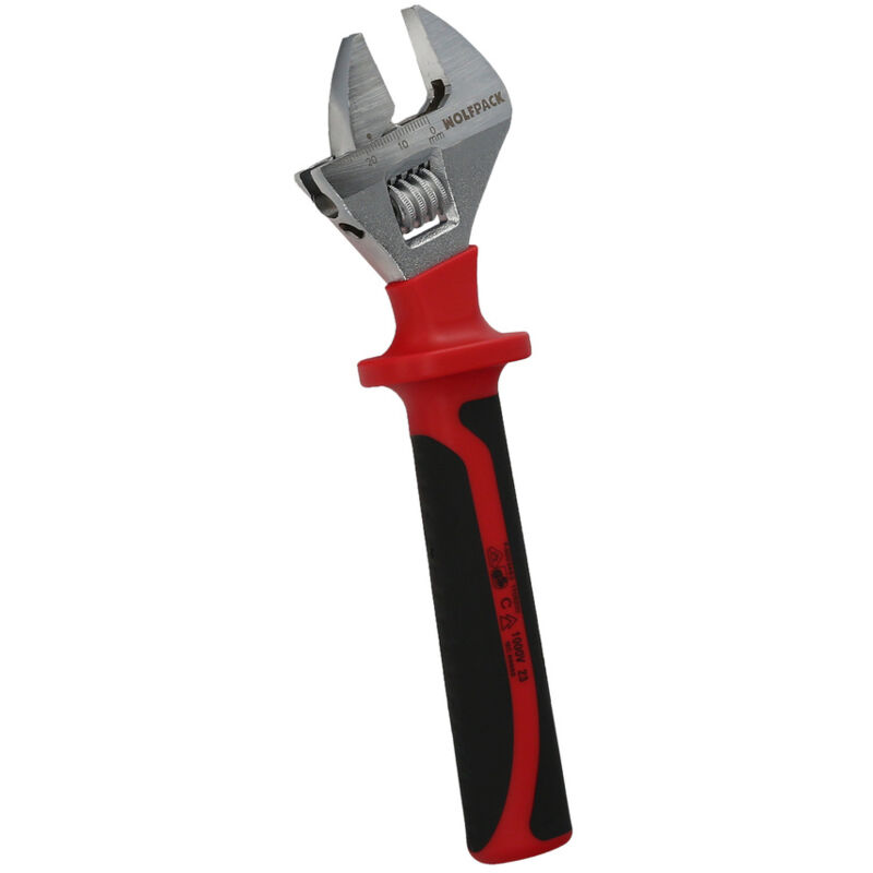 Chiave regolabile con manici isolati 1000 V - Lunghezza 210 mm. e un'apertura massima di 30 mm. Questa chiave si distingue per la sua praticità e versatilità. - Ha una scala millimetrica che ne facilita l'uso e un angolo di lavoro di 15° che ti permetterà di accedere facilmente a piccole aree. - La testa di questa chiave è realizzata in acciaio al cromo vanadio, che garantisce livelli superiori di durezza e resistenza, garantendone così la durabilità nel tempo. Le sue impugnature sono isolate e hanno la certificazione VDE 1.000 V, offrendoti la sicurezza di cui hai bisogno in ogni attività. - L'impugnatura ergonomica in TPR, con base in plastica e impugnatura gommata, si adatta perfettamente alla forma della tua mano, permettendoti di applicare la massima forza comodamente. - Il design a doppia T delle impugnature offre robustezza, resistenza ed ergonomia, mentre la sua perfetta molatura garantisce un adattamento fluido e preciso, senza giochi. Inoltre, la vite non sporge, il che ne