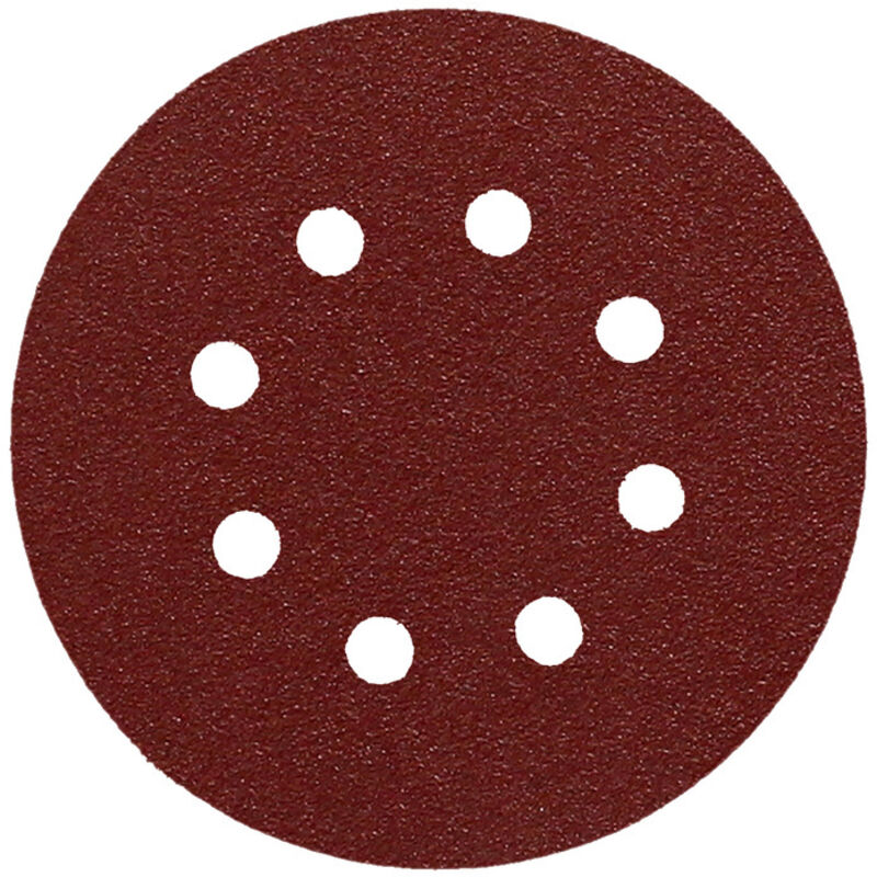 Carta vetrata di ricambio con disco in velcro - 10 pezzi. - Diametro: 125 mm. - Con fori. - Grana 120. - Utilizzo universale nelle levigatrici circolari. - Dimensioni standard.