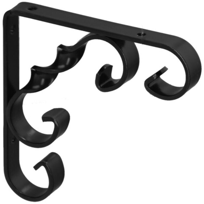 Falena Ornamentale Rinforzata - Misura: 100x100 mm. - Spessore: 3 mm. - Realizzato in acciaio zincato, che garantisce durezza e resistenza. - Verniciato in nero. - Dispone di 2 fori per lato per un fissaggio migliore ed efficace. - Design ornamentale, dona un tocco rustico ed elegante alla stanza. - Articolo conosciuto anche come: quadrato, angolo, aletta per mensola, reggimensola a muro, reggimensola a muro, supporto remoto.