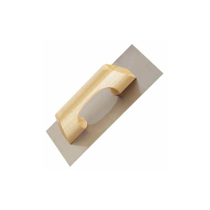 Cazzuola in acciaio inox con manico in legno - Misure: 300x150 mm. - Realizzata in acciaio inox. - Con manico in legno. - Articolo detto anche: piatto, piatto o cazzuola .