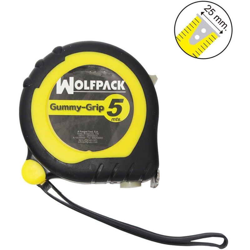 Calibro flessometrico 5 metri - Lunghezza: 5 metri x 25 mm. largo. - Larghezza cinghia 25 mm. - Involucro in abs antiurto rivestito in gomma. - Cinghia in acciaio rivestita in nylon che garantisce la massima flessibilità, durata e protezione dagli agenti esterni. />- Articolo noto anche come metro a nastro, metro, metro magnetico.