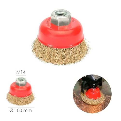 Cepillo Taza Con Alambre De Acero Latonado Rosca M14, Ø 100 mm. Alambre de Ø 0,30 mm.
