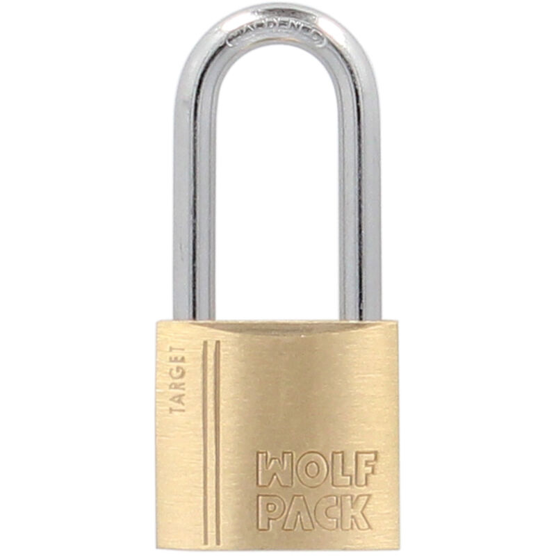 Lucchetto Ottone Arco Lungo 20 mm. - Misure: corpo: 20 mm./Anello di chiusura: ø 3,43 mm./Altezza serratura: 26 mm. - Corpo in ottone per offrire maggiore resistenza e durata. - Con arco in acciaio temprato. - Include 2 chiavi. - Ideale per armadietti, valigie, borse sportive, cassette degli attrezzi o portaoggetti, ecc.