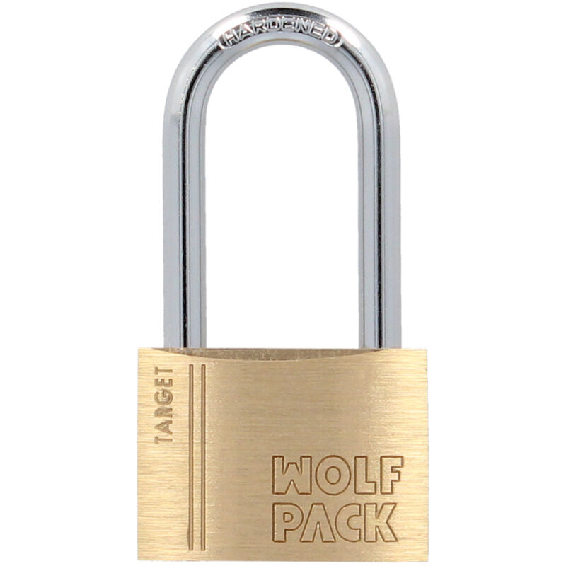 Lucchetto ad arco lungo in ottone 40 mm. - Misure: corpo: 40 mm./Anello di chiusura: ø 6 mm./Altezza serratura: 47 mm. - Corpo in ottone per offrire maggiore resistenza e durata. - Con arco in acciaio temprato. - Include 2 chiavi. - Ideale per armadietti, valigie, borse sportive, cassette degli attrezzi o portaoggetti, ecc.