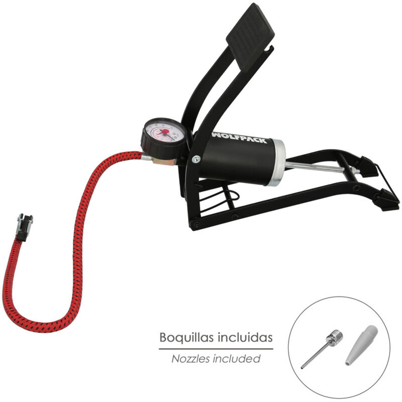 1 pompa di gonfiaggio con piede a pistone Caratteristiche aggiuntive: Con manometro. 1 pistone di gonfiaggio. Con ugello di tenuta. Articoli noti anche come: pompa da bici, pompa a mano, pompa da moto, pompa da materasso.