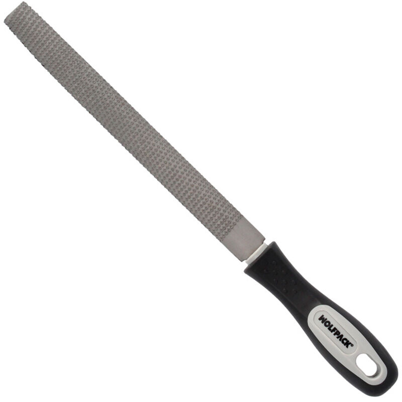 Raspa da ebanista Wolfpack con manico. - Forma semicircolare semicircolare. - Lunghezza: 200 mm./8. - Finitura media, per lavori di levigatura e finitura. - Semitonda: doppia funzione, lato piatto per superfici piane o convesse e lato curvo per superfici tonde o concave.
