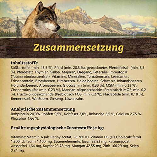 Cibo secco per cani anziani con carne di cavallo e patate dolci