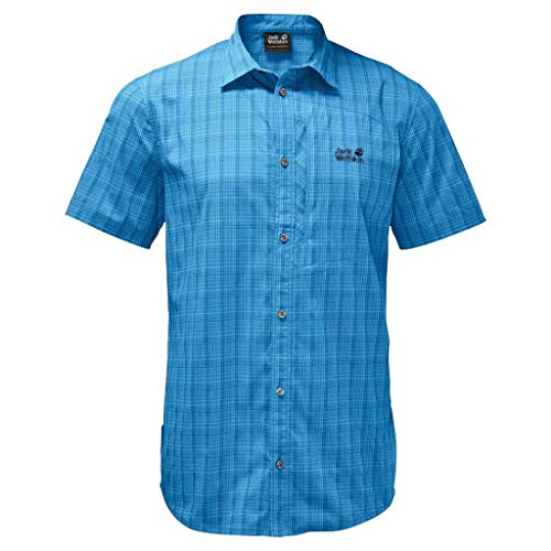 Jack Wolfskin - Camicia da Uomo Rays Stretch Vent, Uomo, Camicia da Uomo, 1401552, Quadretti Blu Brillanti, XL