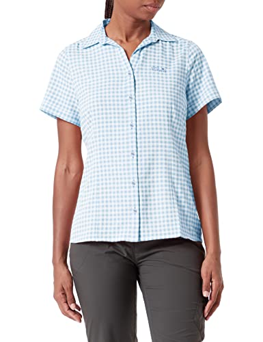 Jack Wolfskin Kepler - Camicia da Donna ad Asciugatura Rapida, a Maniche Corte, Donna, Camicetta ad Asciugatura Rapida a Maniche Corte, 1401723-8143004, Blu Ghiaccio a Quadretti, L