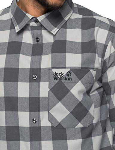 Jack Wolfskin Red River Shirt Hemd für Reise Freizeithemd Atmungsaktiv Camicia, Grigio (Ebony Checks), S Uomo