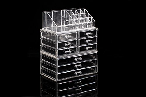 WOLFTEETH Acrilico trasparente Caso Organizzatore Trucco 3 Calci Piazzati Totale 25 Sezioni Con 9 Cassetti 5009