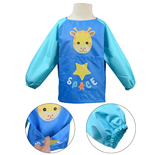 WOLFTEETH Grembiule Bambini bavaglino Impermeabile Manica Lunga per Pittura,opera d'arte di scuola- adattarsi per 6-9 anni