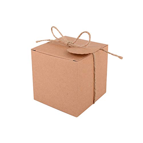 Wolfteeth 50 Pezzi Kraft Scatole Bomboniere Regalo Scatoline Cubo Carta Portaconfetti Vintage con Corda in Canapa e Bigliettino Tags per Matrimonio Compleanno Festa Confezionamento (7X7X7cm) 790601