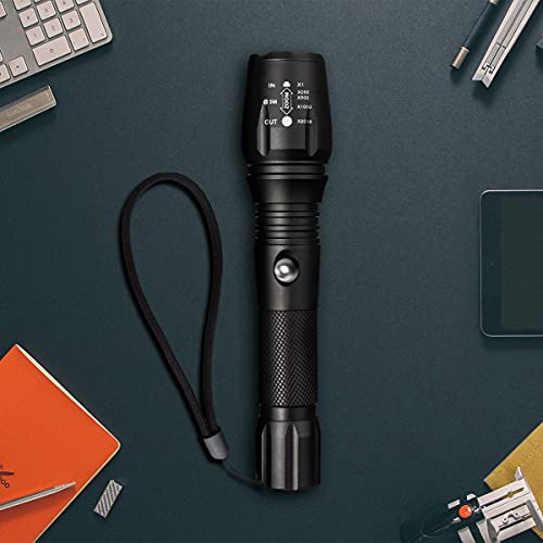 La torcia led ricaricabile è realizzata in resistente lega di alluminio - rendendola impermeabile (IPX67) e antishock da una caduta di 10 piedi, congelamento o addirittura schiacciata da un camion. La lampada da campeggio impermeabile è anche zoomabile con cinque diverse modalità d'illuminazione (alte, medie, basse, stroboscopiche e SOS) per adattarsi a diverse situazioni. Il riflettore può illuminare una distanza di quasi 300 metri, rendendolo ideale per l'osservazione a distanza.