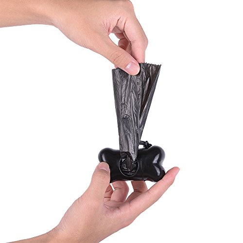 Con due dispenser a forma di osso con gancio da guinzaglio, con apertura rotonda per l'estrazione rapida dei sacchetti.